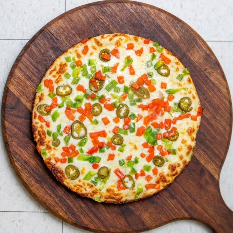 Lean ground beef, Onion, Green pepper, Jalapenos, Fresh Tomatoes and Mozzarella Cheese